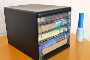 そこで、このフィルムで巻いて、引き出しが出ないように固定してしまいましょう