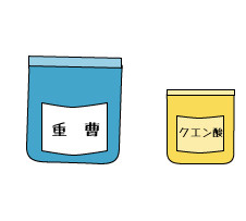 クエン酸と重曹を1:2の割合で混ぜて作ります。